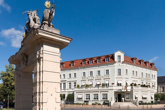 Das 4-Sterne Romantik Hotel Am Jägertor liegt im Zentrum Potsdams, nur wenige Gehminuten vom Schloss Sanssouci und dem Holländischen Viertel entfernt. Alle 62 Zimmer und Suiten sind stilvoll eingerichtet und verfügen über Dusche, WC, Klimaanlage, Sitzecke, Schreibtisch, kostenfreien DSL-Anschluss, Safe und Minibar. Weitere Besonderheiten des Hotels: das mediterrane Restaurant “Fiore” mit Wintergarten, drei Veranstaltungsräume, eine Lobbybar und eine wunderschöne Gartenterrasse.